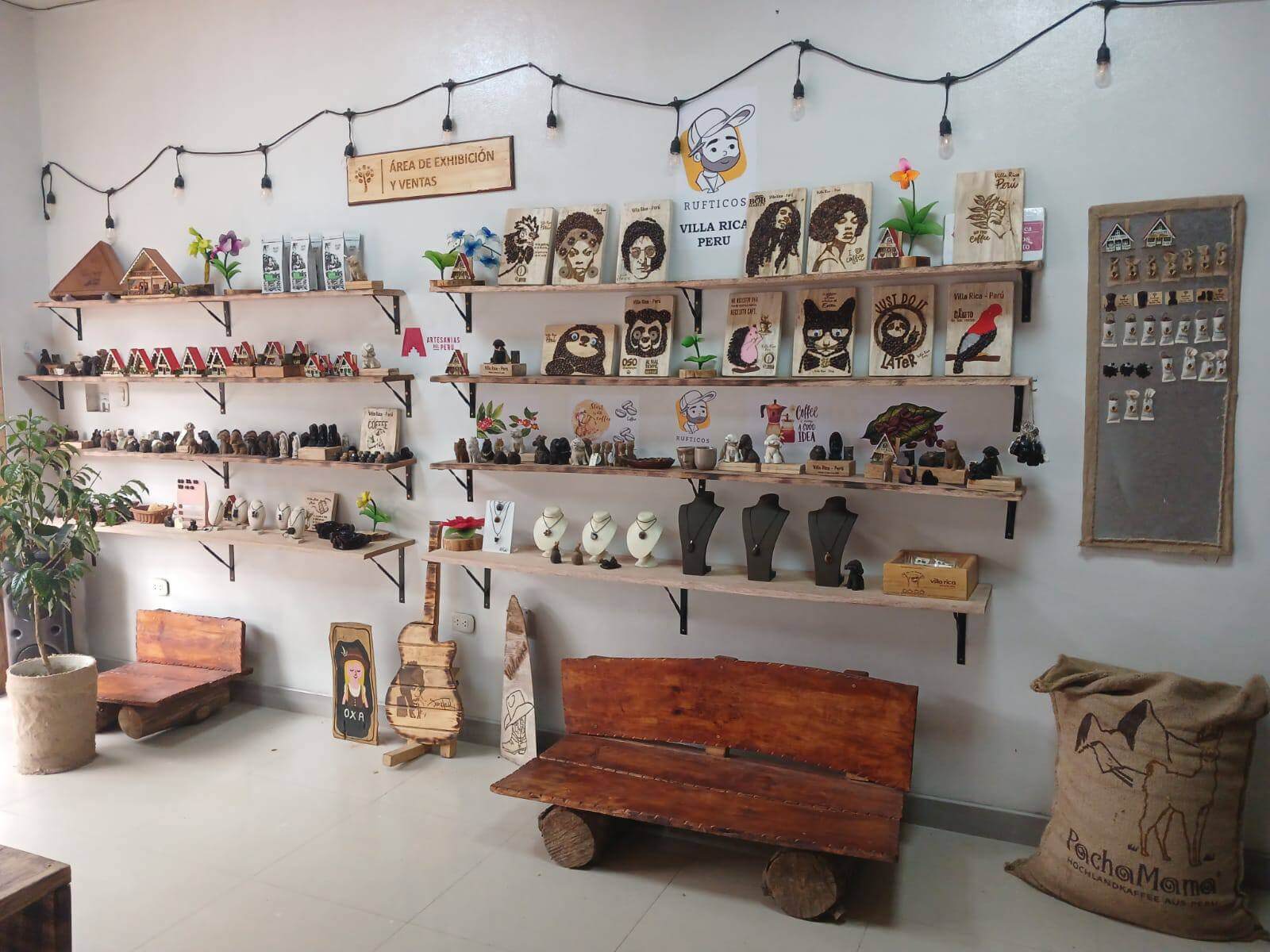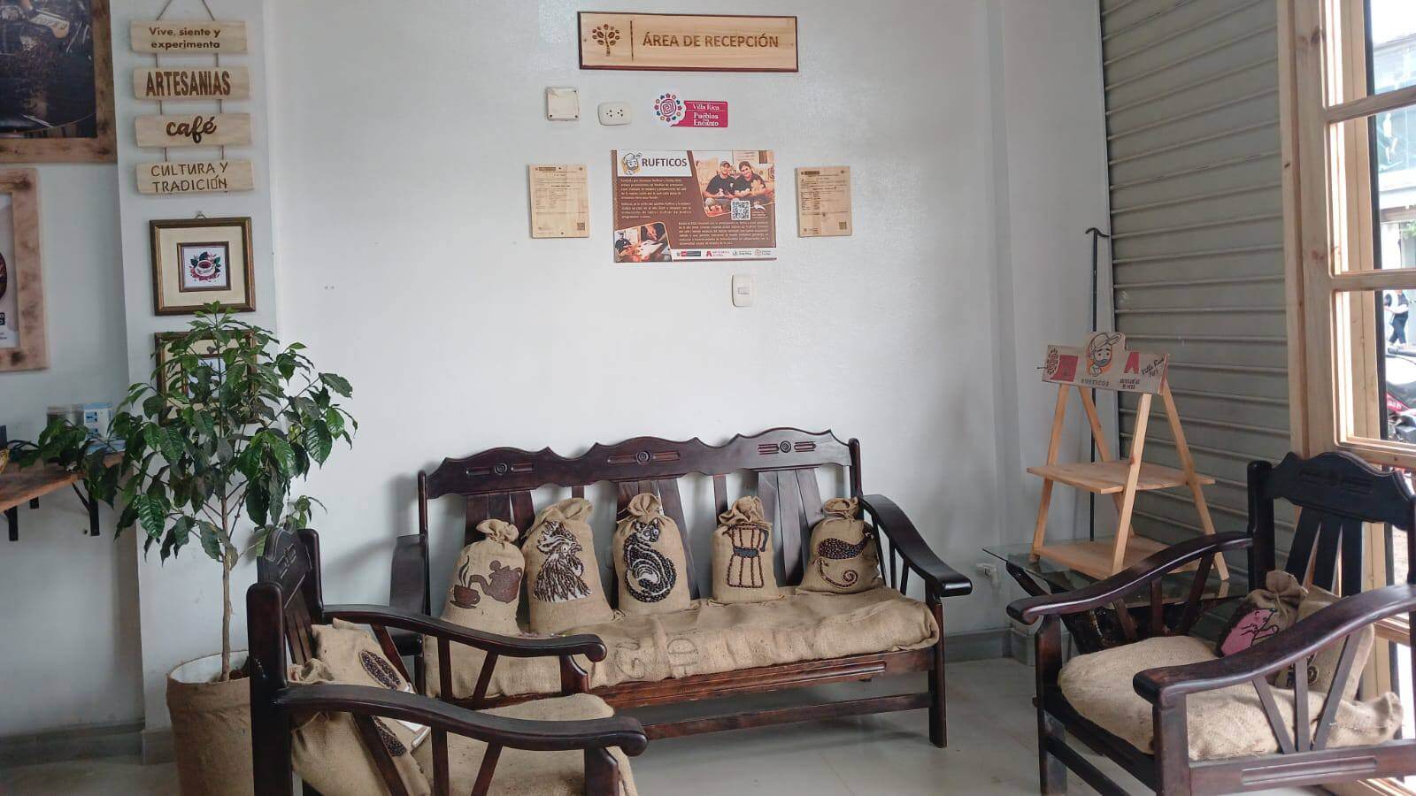 Elaboración y venta de artesanías a base de madera y café, desde souvenirs, bisuterías, imanes, cuadros, percheros, bandejas, etc tanto decorativos como utilitarios con aroma a café